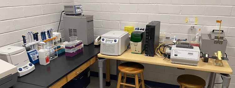 The NNTRC also provides ample room for all projects to occur at the same time. The general lab houses tables and equipment to meet the demand for work. Along with more space, the general lab also has multiple freezers used to store samples and chemicals. The Milli-Q water system is housed in this lab and various centrifuges.