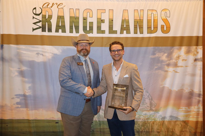 KINGSVILLE (April 1, 2026) — During the recent Society for Range Management’s (SRM) 79th annual meeting in Monterey, California, Dr. Evan P. Tanner, Assistant Professor and Meadows Professor of Semi-arid Land Ecology with Caesar Kleberg Wildlife Research Institute (CKWRI) at Texas A&M University Kingsville, received the Outstanding Young professional Award.