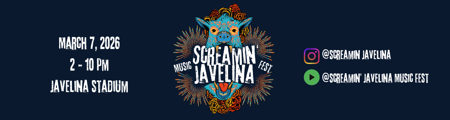 We're thrilled to announce our annual Screamin' Javelina Music Festival, hitting Javelina Stadium on March 7, 2026. Join us for a day of non-stop music, surrounded by the electric energy of Javelina Stadium!